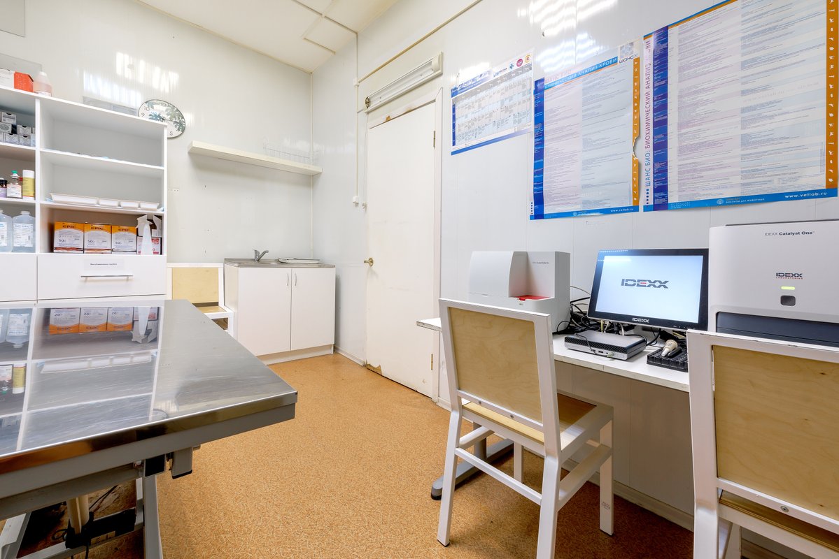 Среди наших услуг анализ крови, анализы на панлейкопению, пироплазмоз, токсоплазмоз, УЗИ, ЭКГ, рентген, анестезия, вакцинация кошек, собак и кроликов, вакцинация против бешенства, взвешивание животных, дегельминтизация кошек и собак, кастрация, проведение кесарева сечения, обработка от блох, прием родов у животных, стерилизация, удаление зубного камня, удаление зубов, извлечение клещей, удаление параанальных желез, уколы, чистка зубов, чипирование кошек и собак, услуги груминга (в том числе маникюр, купание, окрашивание шерсти, подстригание когтей, стрижка и чистка ушей), передержка кошек и собак, эвтаназия животных, приём ветеринарного дерматолога, кардиолога, ортопеда, офтальмолога, стоматолога, терапевта, хирурга, гинеколога и диагноста, оформление ветпаспорта, консультация орнитолога, диспансеризация животных, инфекционный стационар для животных, лечение грызунов, морских свинок и экзотических животных, подготовка к выставке, помощь в выборе питомца.